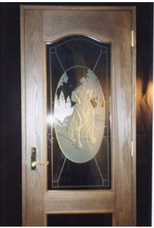 あなたの家のガラスドアの玄関に 一流のデザイナーによる愛犬の像を 熟練の職人によって彫刻されたドギードア